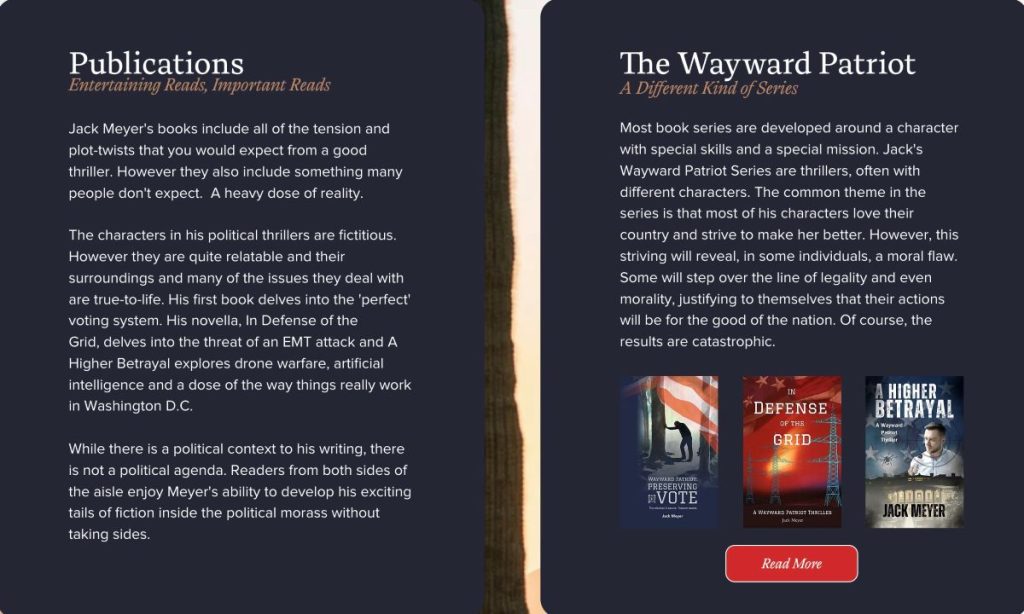Jack Meyer the Fiction Thrill writer influenced by Tom Clancy and the Hunt for The Red October follows up his with his second ‘Wayward Patriot’ Novel, A Higher Betrayal. If you love good thriller novels then you will like this one.