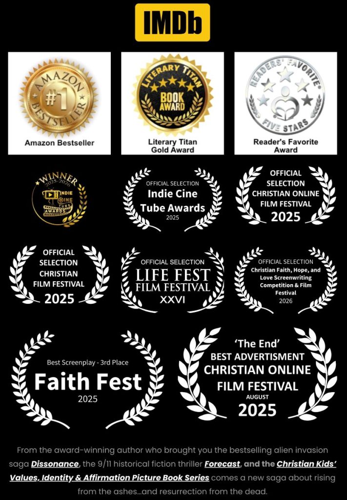 He is the prolific author of the bestselling “Dissonance” 6-book alien invasion saga, the Christian dystopian saga “The End,” the sci-fi thrillers “Forecast,” “The Phoenix Experiment” and “The Slide,” and over 40 books.